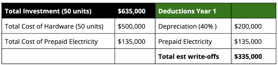也就是说,比如有个人买了50台矿机,第一年能write off的成本保守估计就是30多万😂这个换算成省的税(公司税阶和个人税阶不一样),就有差不多5万-17万左右!
